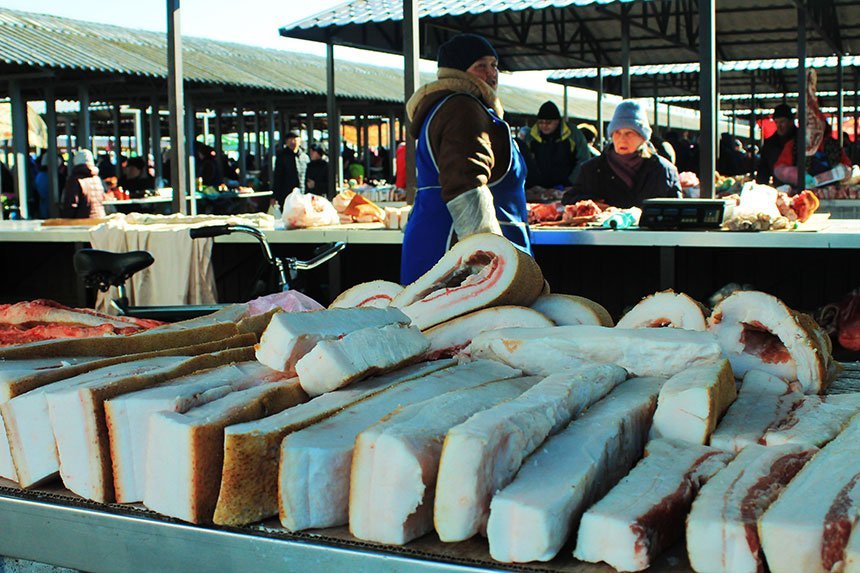 Ринок на вулиці Лугова Бориспільського районного споживчого товариства ми звикли називати недільним. Але вже протягом майже двох місяців ринок працює ще й у середу. Про це кожної неділі інформують відвідувачів ринку із гучномовців. Але поки що торгівля у середу не може похвалитися великою кількістю народу. І продавців небагато, і покупці не летять, як бджоли на мед. Але є продавці, які виходять торгувати не тільки в неділю, але й кожної середи. Один із них — продавець м’яса, що на фото.