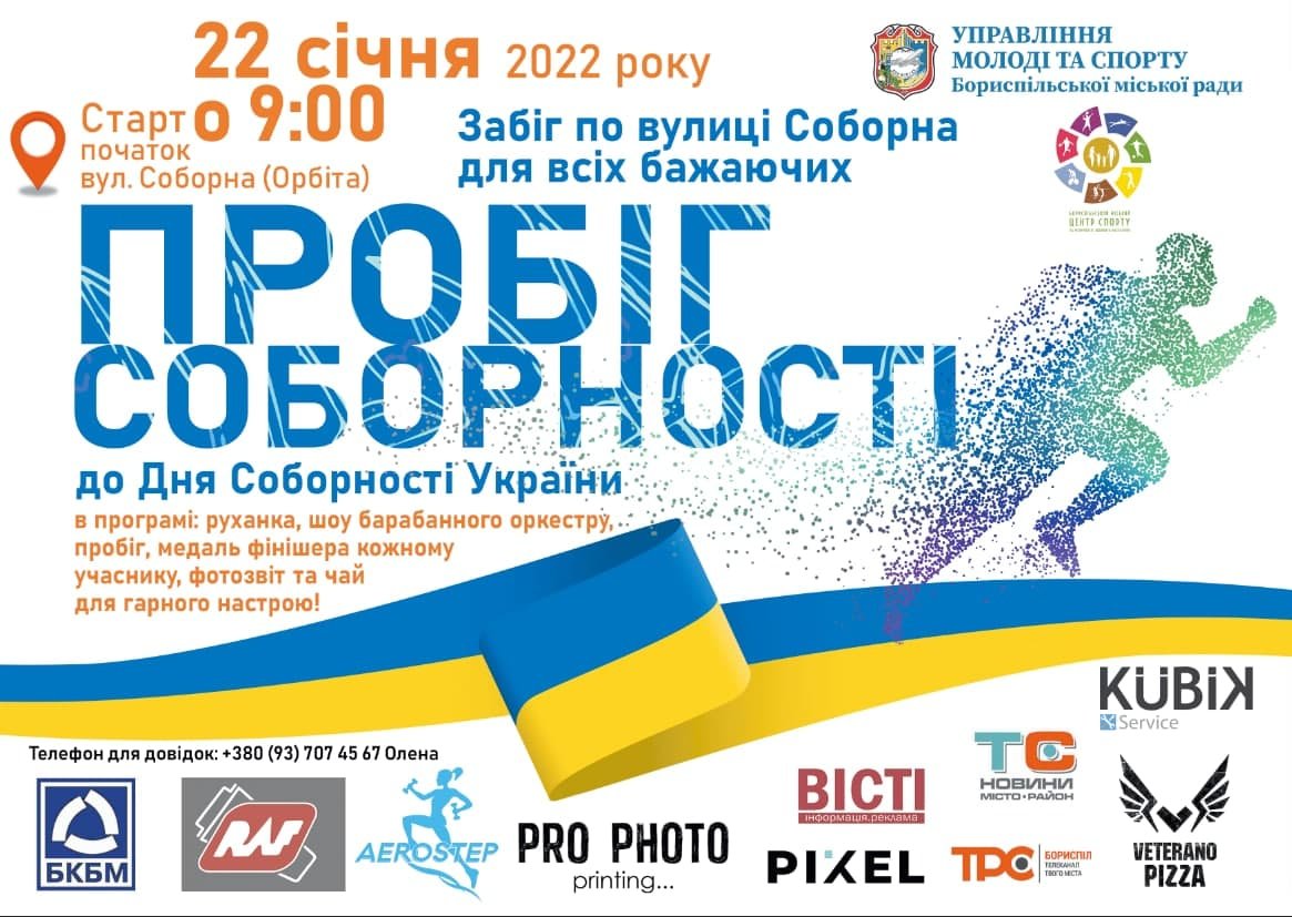 22 січня 2022 року з нагоди відзначення Дня Соборності України відбудеться Пробіг Соборності вулицею Соборна. Забіг стартує на розі вулиць Соборна та Київський Шлях. Відповідно, 17 січня було прийнято рішення виконавчого комітету Бориспільської міської ради про тимчасове обмеження руху транспортних засобів вулицею Соборна (від вул. Київський Шлях до вул. Френкеля). Рух буде обмежено з 8 по 12 годину 22 січня 2022 року. Також із 08.00 буде заборонено стоянку транспортних засобів у місці проведення заходу (початок вулиці Соборна, біля будинку Київський Шлях, 27).