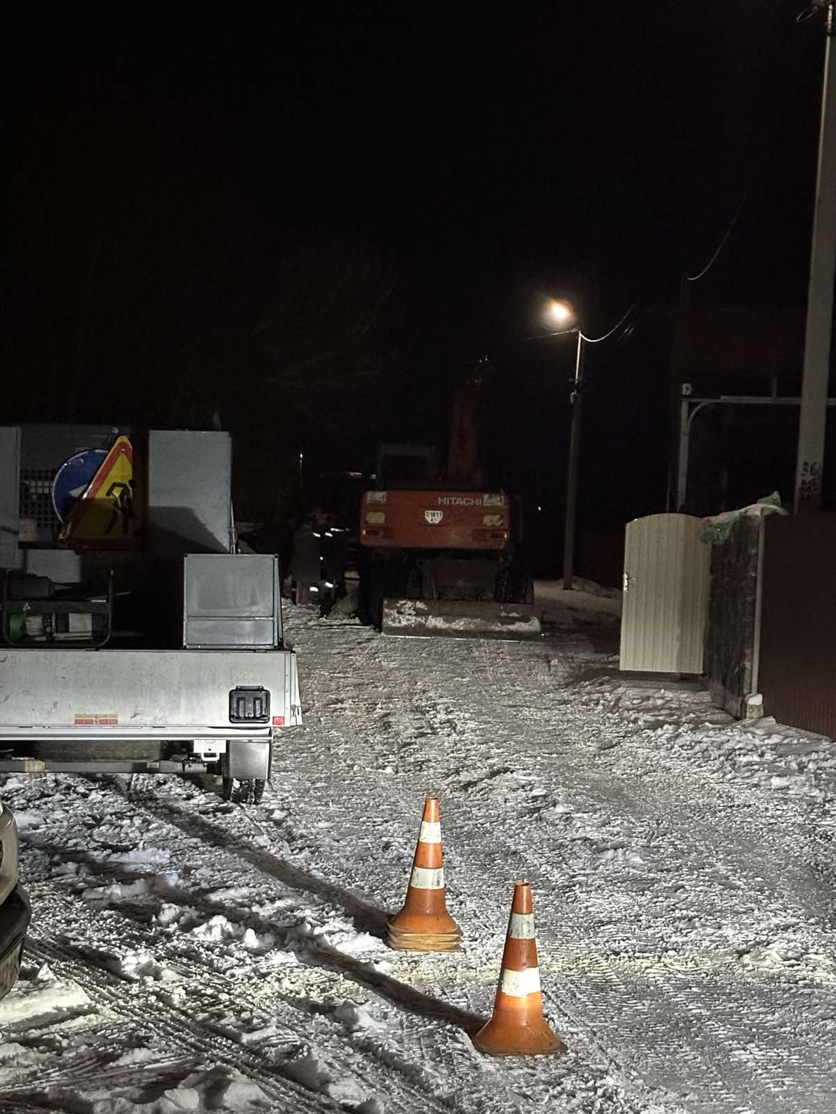 Одне пошкодження кабелю ліквідували у той же день, але виявили другий порив, над яким був припаркований автомобіль. Довелося чекати власника. В’ячеслав Толкач зазначив, що якби доступ був вільним, пошкодження кабелю могли б ліквідувати значно швидше. Опівдні наступного дня роботи по ліквідації аварії ще тривали. Щоб розкопати мерзлу землю і дістатися місця пошкодження, електрикам допомагав бульдозерами бориспільський забудовник Олександр Сич.