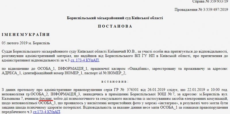 Незважаючи на це, Бориспільський суд прийняв рішення про конфіскацію. Крім цього, керуючись ч. 3 ст. 154 Кодексу України про адміністративні правопорушення (порушення правил утримання собак і котів) власника собаки оштрафували на 1700 грн та зобов’язали сплатити судовий збір.
