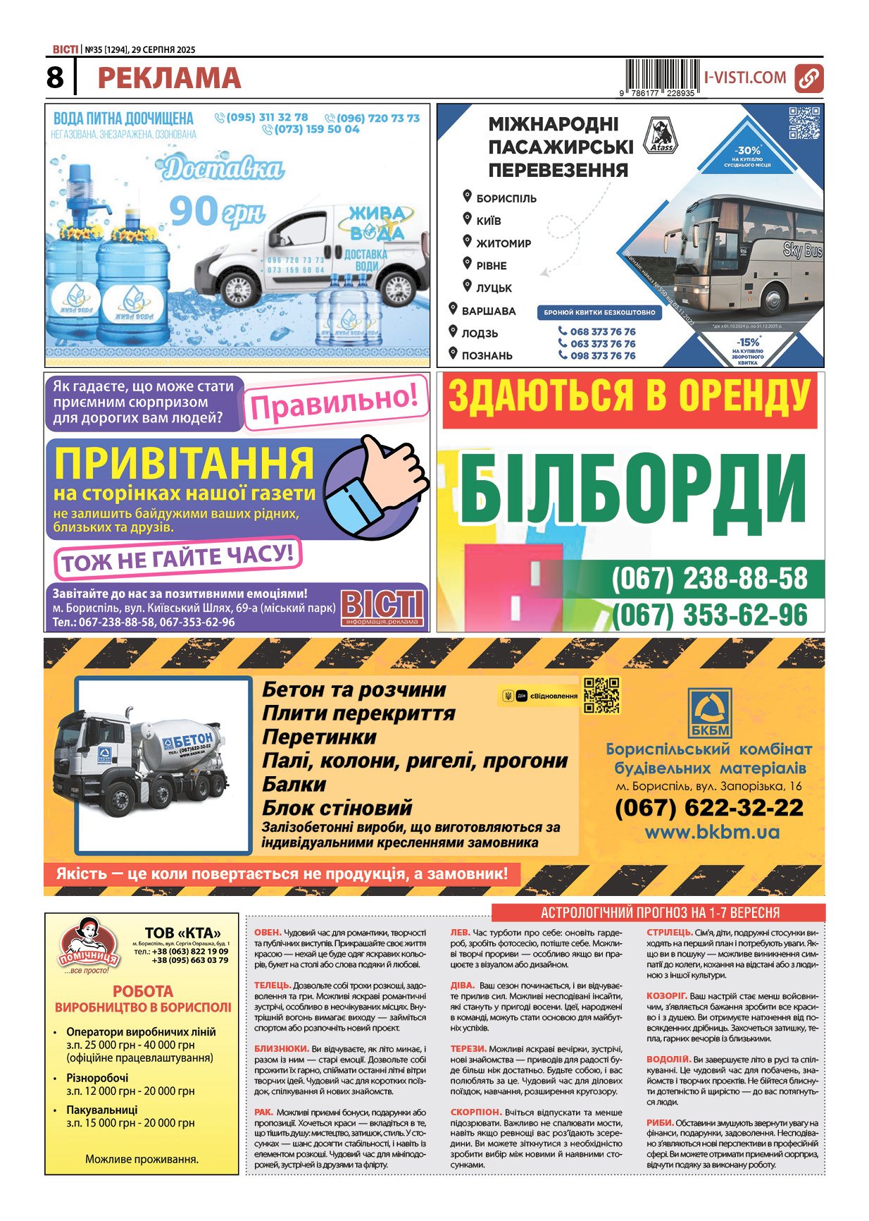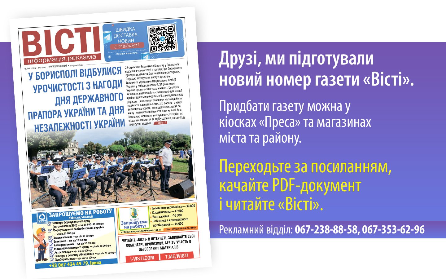 Друзі, ми підготували новий номер газети «Вісті». Придбати газету можна у кіосках «Преса» та магазинах міста та району.