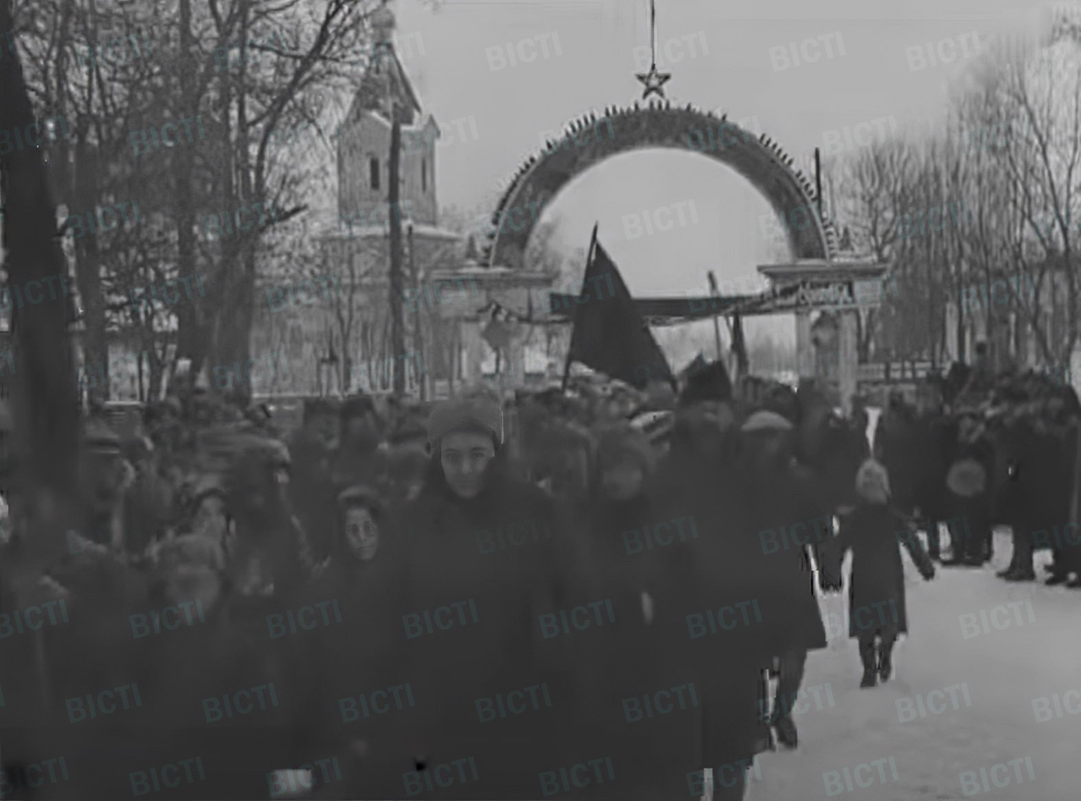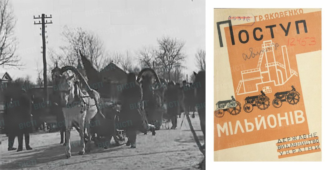1930-й відомий як рік початку масового розкуркулення в Україні. На початку року практично всі родини, які підпадали під ознаки «куркульських», позбавили майна та худоби, а одночасно з цим почали процес колективізації — об’єднання колишніх селянських господарств у колективні господарства, які спочатку називалися ТСОЗи чи просто СОЗи (товариства спільного обробітку землі). При цьому вище керівництво країни намагалося «відсторонитися» від тиску, яким супроводжувався цей процес, поклавши всю відповідальність на місцеві органи влади. Після виходу статті Сталіна «Запаморочення від успіхів» з критикою місцевих керівників та партійних діячів, селяни, яких уже загнали в колгоспи, почали масово виходити з них. Потрібні були інші методи заохочення — і одним із них стала масова агітація. У численні міста та села виїхали активісти-агітатори, серед яких, зокрема, письменники та кореспонденти, які мали м’яко та непомітно продемонструвати переваги колективних господарств. У Центральній науковій бібліотеці зберігається книга, написана одним із таких агітаторів — письменником Григорієм Яковенком, який розповідає про свою поїздку по Київщині і, зокрема, у Бориспіль — тоді ще село. Хоч це й здебільшого агітаційний твір, але, разом із тим, він дає змогу побачити Бориспіль та його колоритних мешканців очима прибулого гостя. До уваги читачів «Вістей» — короткий огляд книги «Поступ мільйонів: нотатки з подорожі по комунах та колективах Київщини весною 1930 року» та найцікавіші моменти з неї.