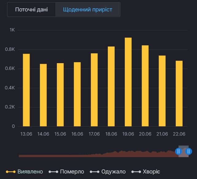 Відзначимо, що 681 - це найнижчий показник захворювання з 16 червня.
