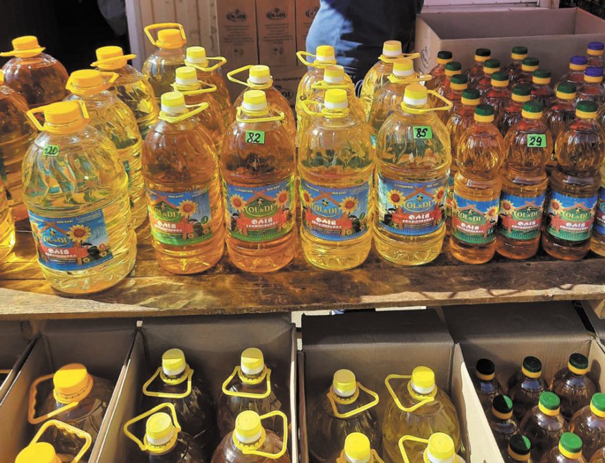 Асортимент на ринку олії. Соняшникова коштує 30 грн за літр, рижієва – 90 грн.