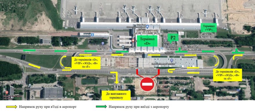 Для этого при подъезде к терминалу D перед многоуровневым паркингом водителям необходимо будет свернуть налево, проехать по специально выделенным полосам для временного реверсного движения, свернуть направо после окончания паркинга и только после этого заехать на эстакаду терминала D или проследовать к VIP-терминалу.