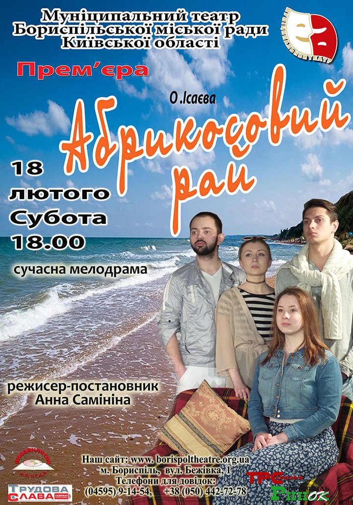 Бориспільський театр запрошує на прем'єру сучасної мелодрами "Абрикосовий рай"